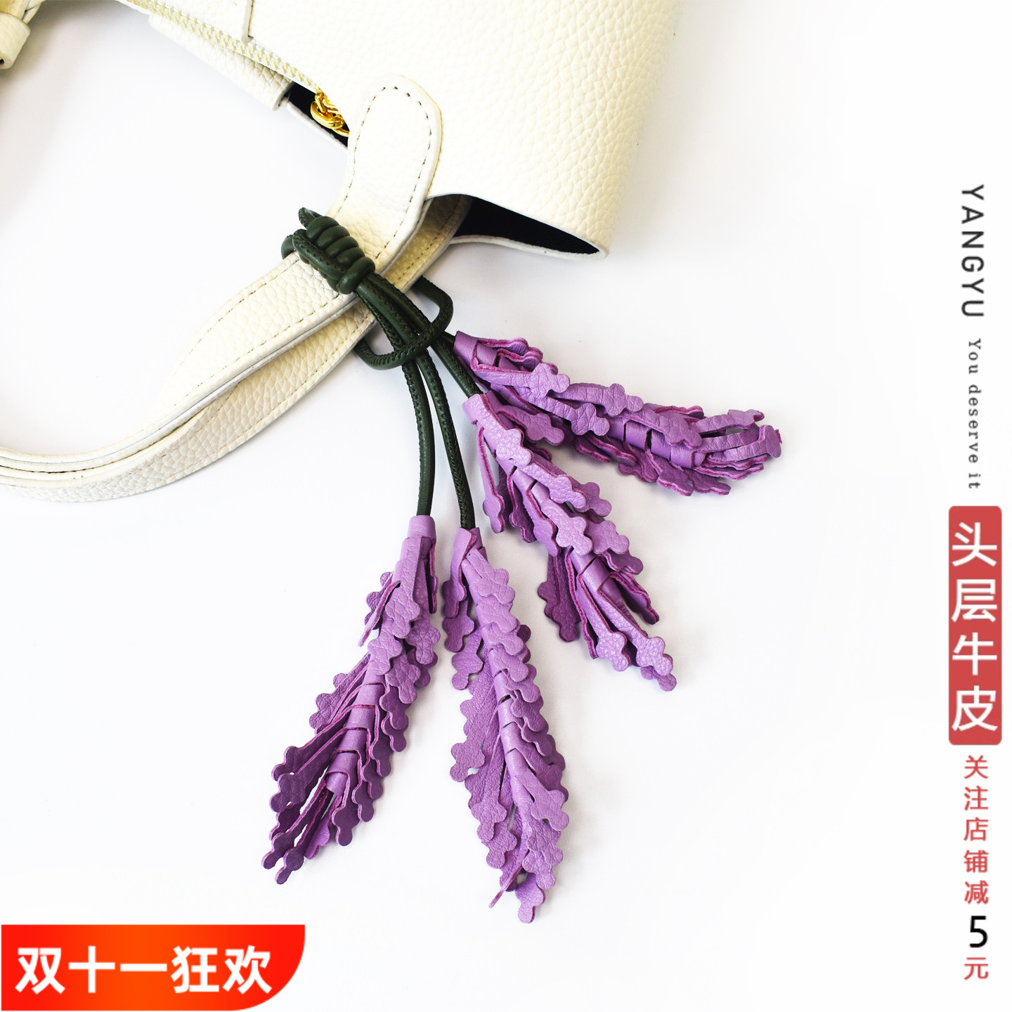 洋芋【薰衣草】真皮包挂件头层牛皮花朵挂饰吊坠水桶包托特包通用