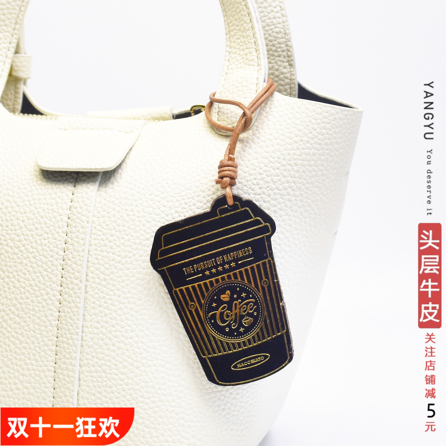 洋芋【咖啡杯】coffee复古头层牛皮包挂件真皮钥匙扣包男女包通用