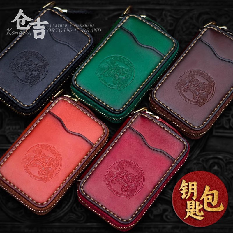 仓吉手工!必买h钥匙包!牛皮男女卡包短款真皮包复古零钱包锁匙包