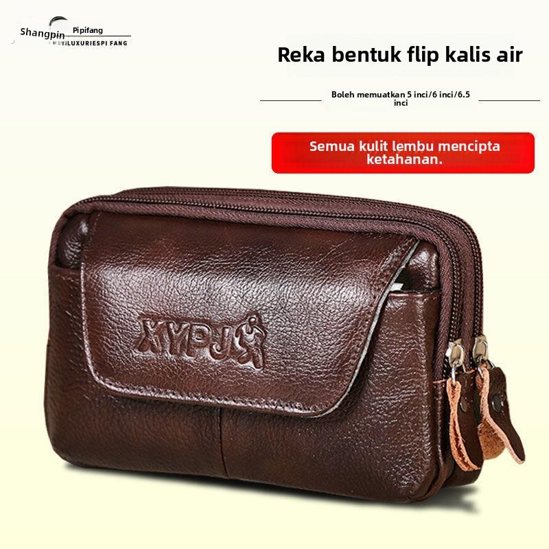 真皮手机包男士穿皮带腰包多功能中年横款干活用老人手机包牛皮包