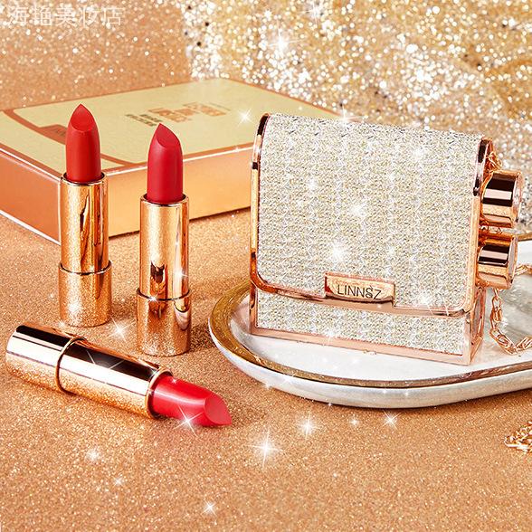 礼物套盒LINNSZ琳妆蕾丝柔雾皮包口红套装三支装皮包哑光口红套盒