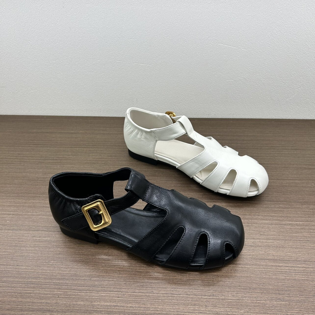 欧洲站真皮包头罗马凉鞋女2026夏季镂空低跟休闲鞋软底舒适平底鞋