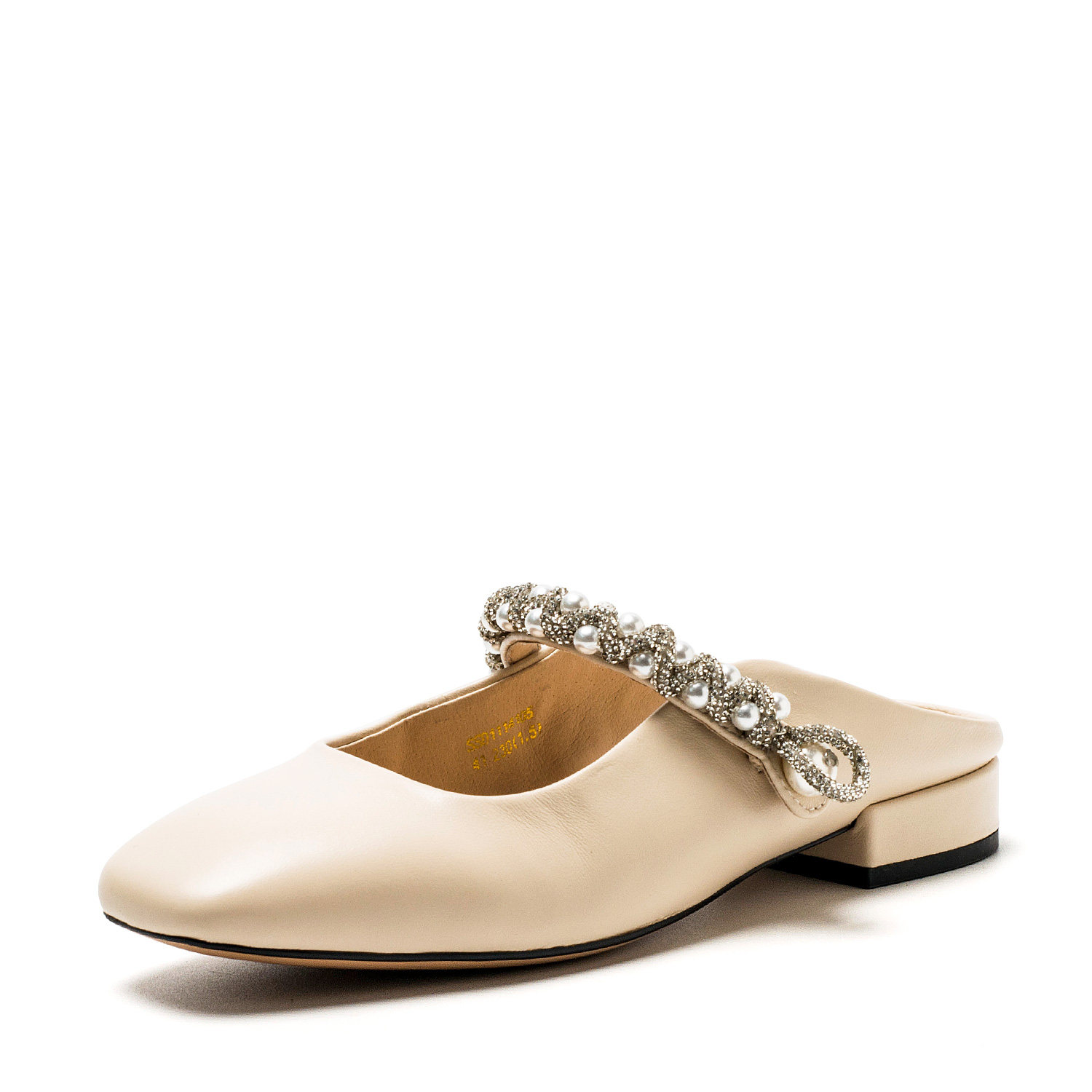 真皮包头凉拖鞋子女后空方头羊皮玛丽珍一字带水钻珍珠SSD1114105