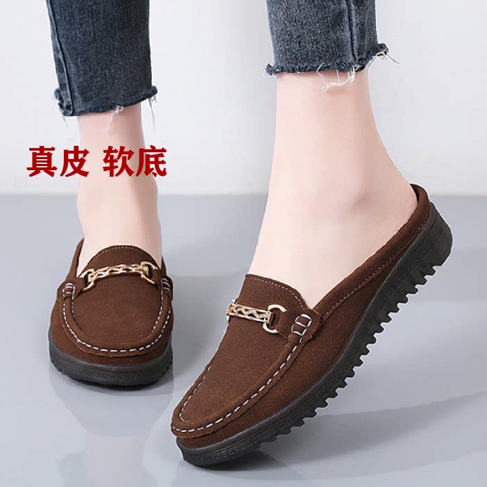 康莉半包穆勒鞋女春夏新款低跟优雅真皮包头拖外穿休闲拖鞋一脚蹬