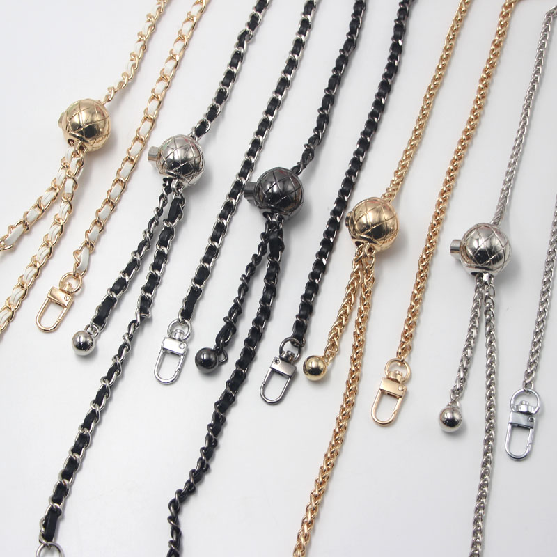 带金珠球可调节扣包包链条斜挎金属包链条穿pOu皮包方胖子替换肩