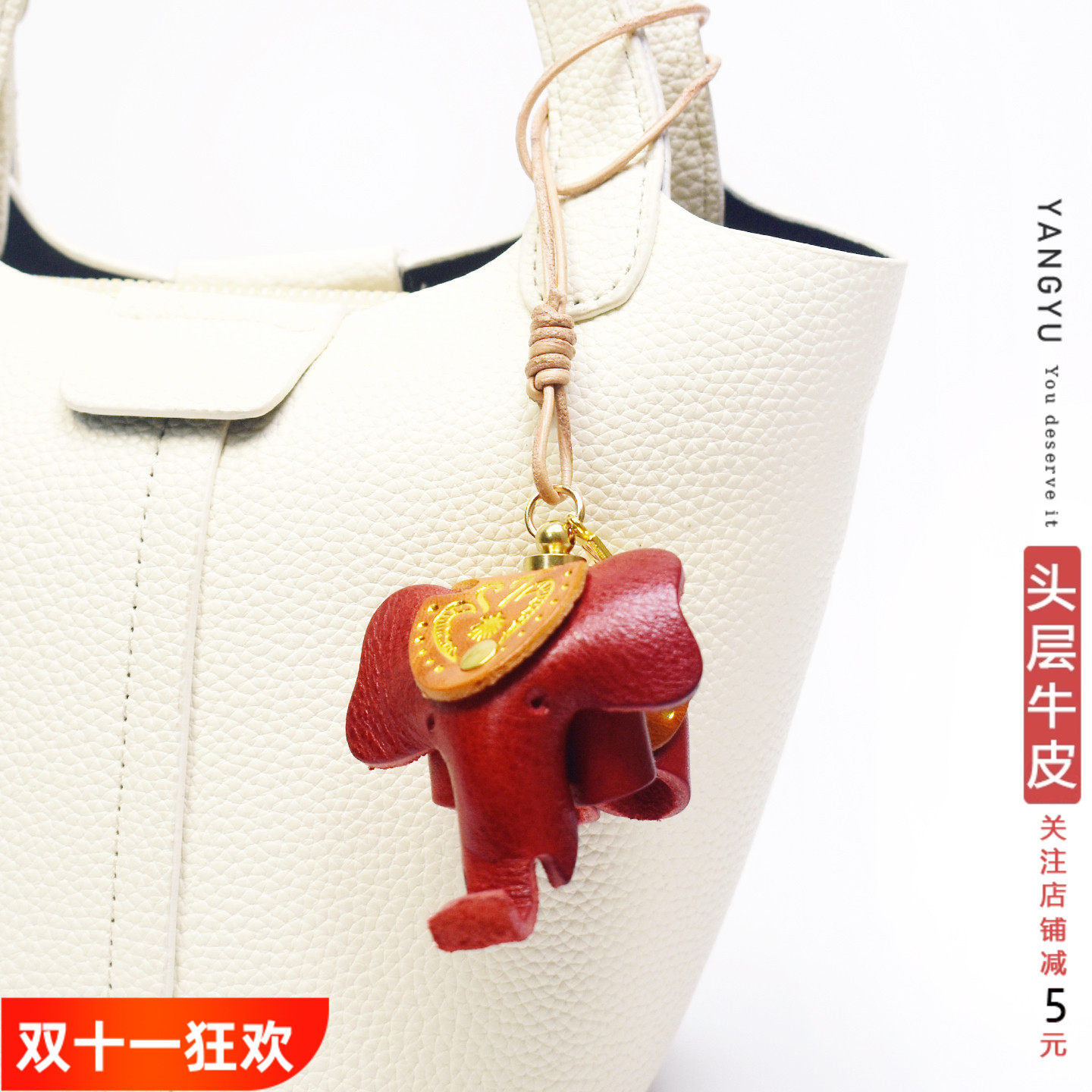 洋芋【平安大象】 真皮北欧手工牛皮包挂饰挂件手账钥匙红色挂饰