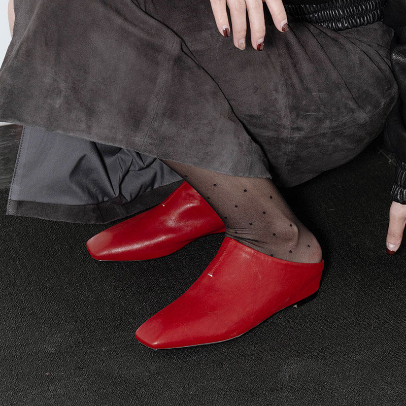 限时78~真皮包头拖鞋一脚蹬软面女春夏外穿半拖鞋方头平底穆勒鞋