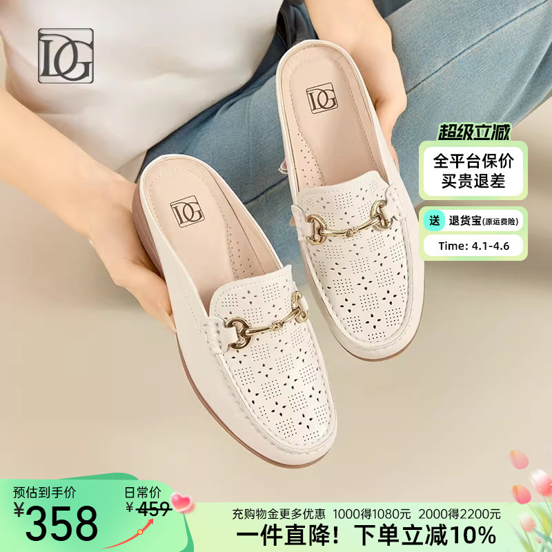 外贸撤柜断码真皮包头半拖鞋女夏季平底透气网面凉拖休闲小白鞋潮