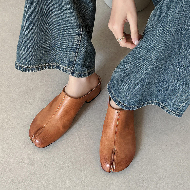 简约风真皮包头拖鞋女2026春夏新款分趾复古夹趾低跟粗跟凉拖纯皮
