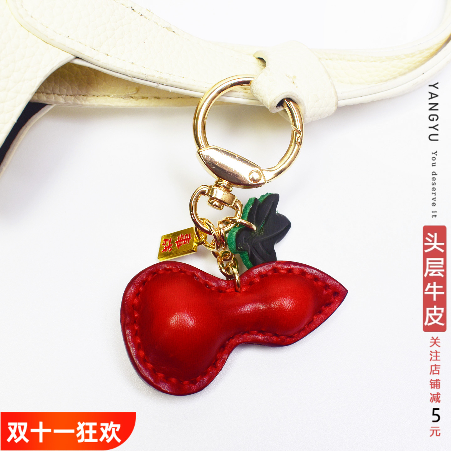 洋芋【好运葫芦】原创头层牛皮包挂饰植鞣真皮钥匙扣车挂件送礼物