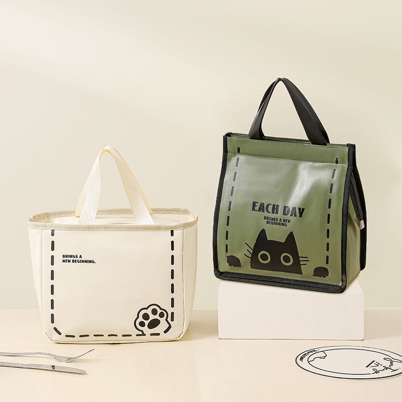 简约高级感可爱皮包饭盒包大容量便当保温袋上班族装饭带饭手提包