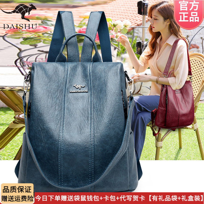 正品袋鼠双肩包女皮包2026新款防盗背包旅行大容量妈妈软皮软皮