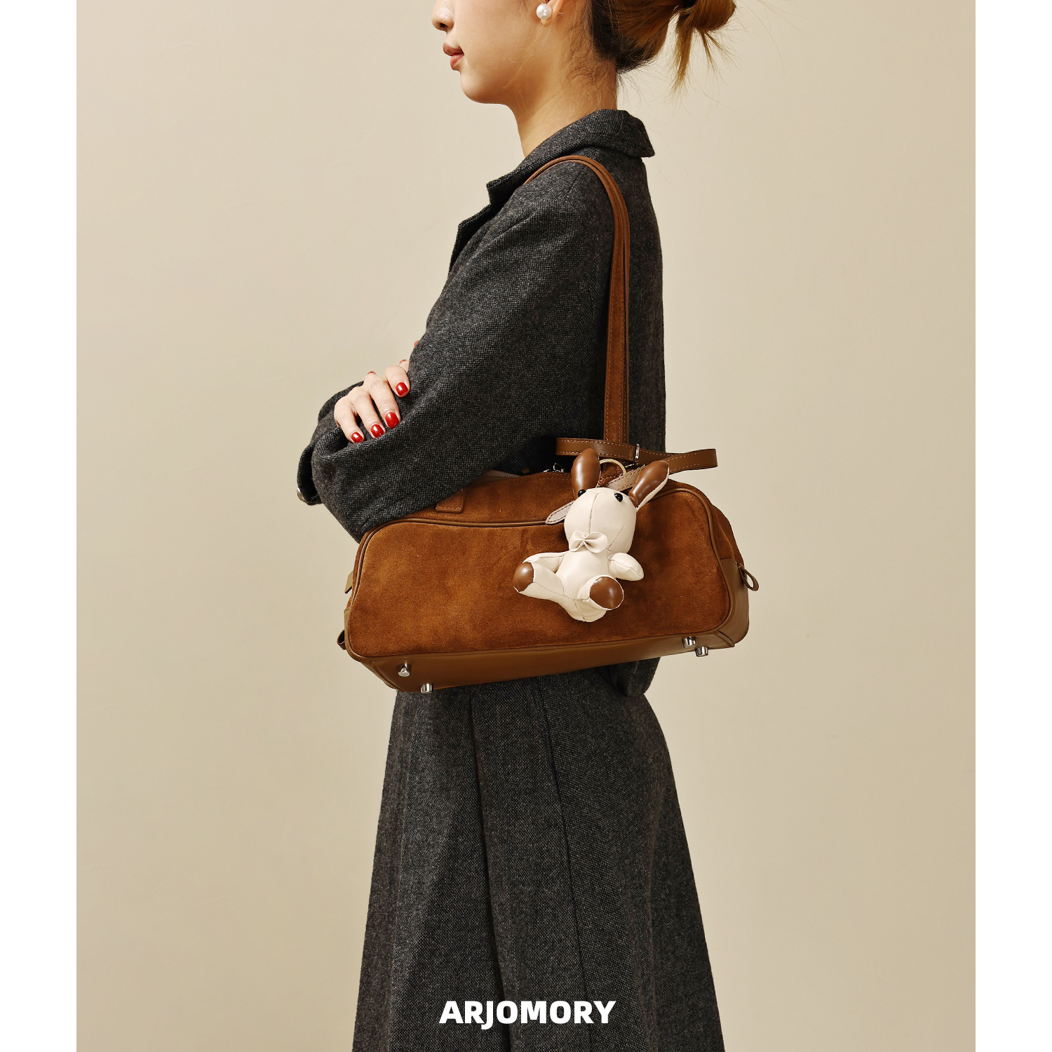 ARJOMORY小众品牌复古麂皮绒保龄球包女2025秋冬新款百搭腋下包包