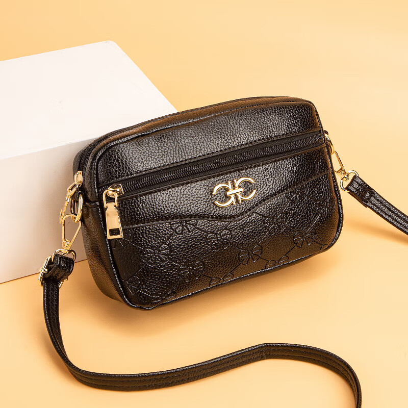 袋鼠(KANGAROO)真皮包包2023新款斜挎小包包中老年妈妈款女士软皮包婆婆手机钱包 黑色