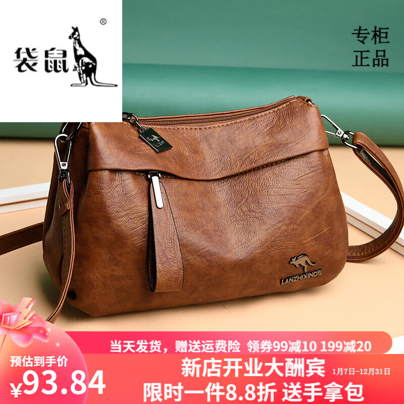 袋鼠专柜皮包单肩斜挎包女2025新款洋气中年妈妈包高级感软皮小包