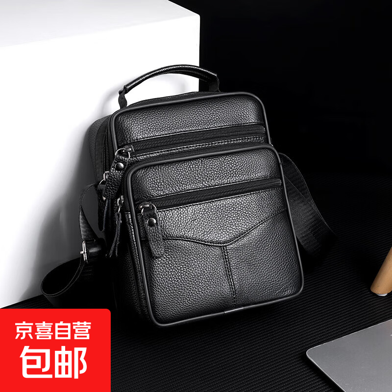 头层牛皮新款男包真皮皮包背包男士包单肩斜挎包潮男士斜挎包挎包 黑色
