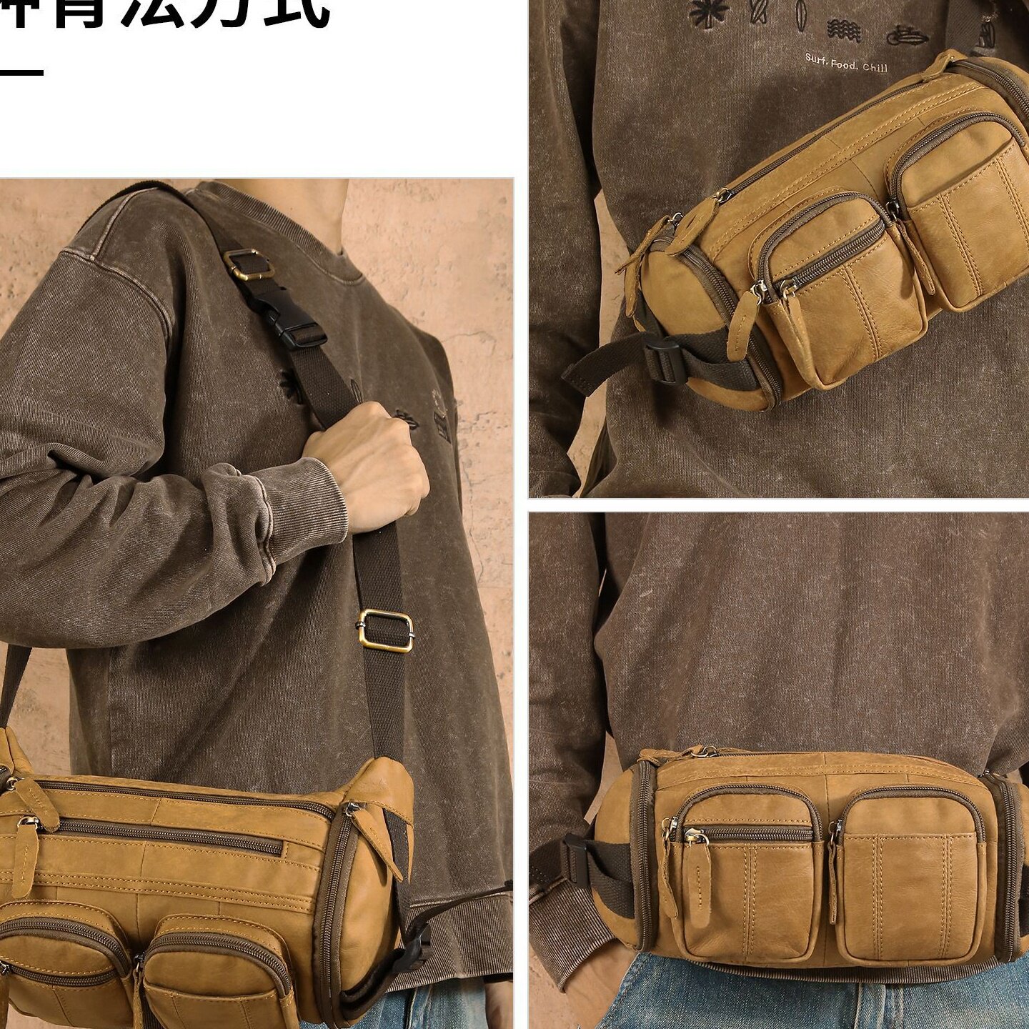 2026新款真皮感斜挎包多口袋横款单肩包复古男士大容量皮包多功能
