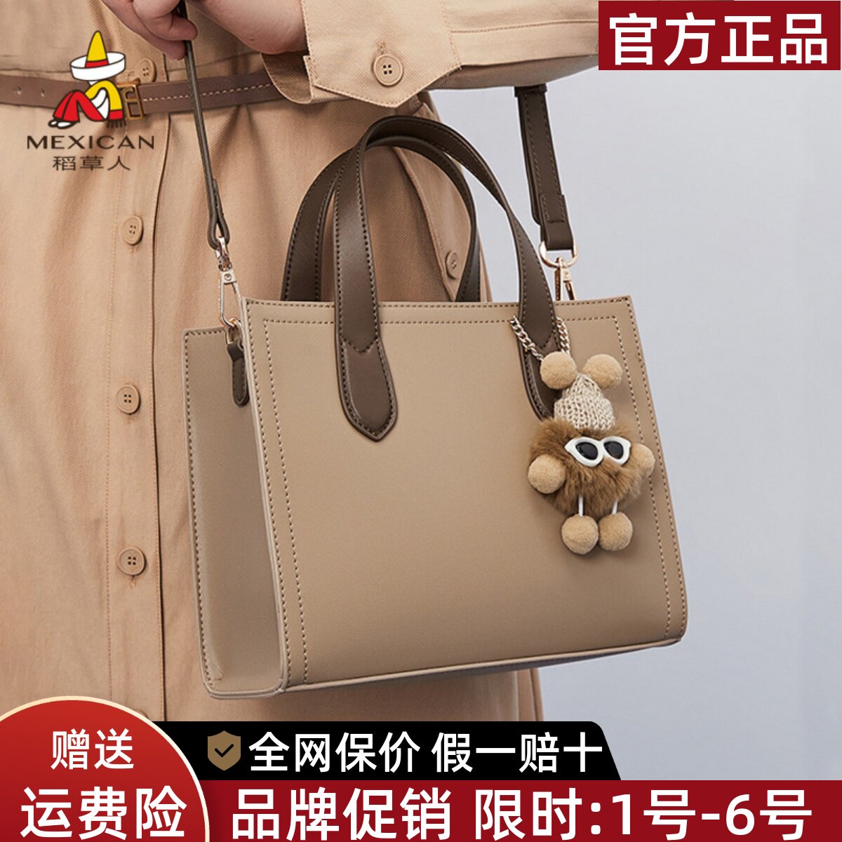 稻草人手提包女2026新款真皮包包时尚撞色斜挎包挂饰牛皮单肩女包