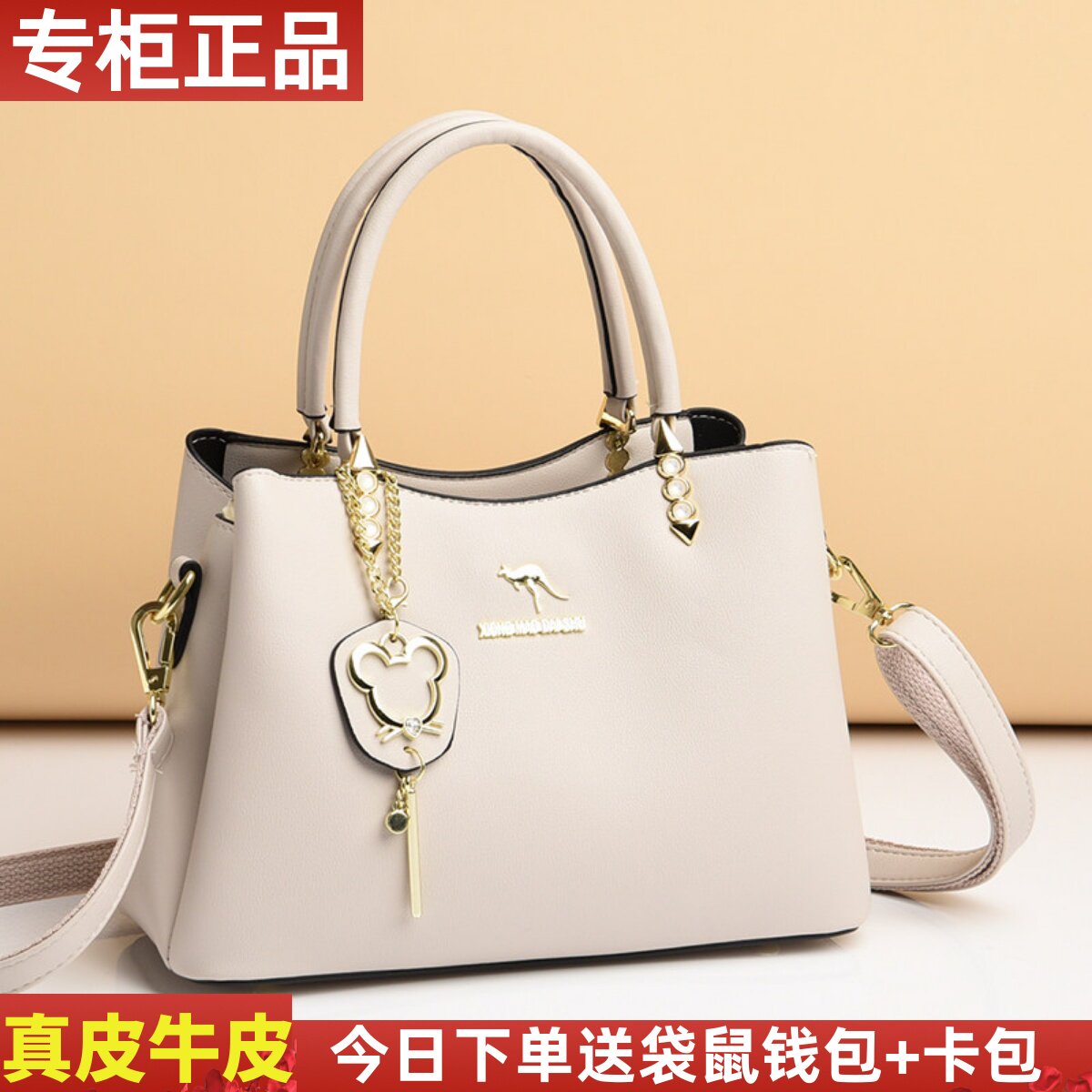 正品袋鼠真皮包包2026新款女百搭手提单肩斜挎包软皮包牛皮送妈妈