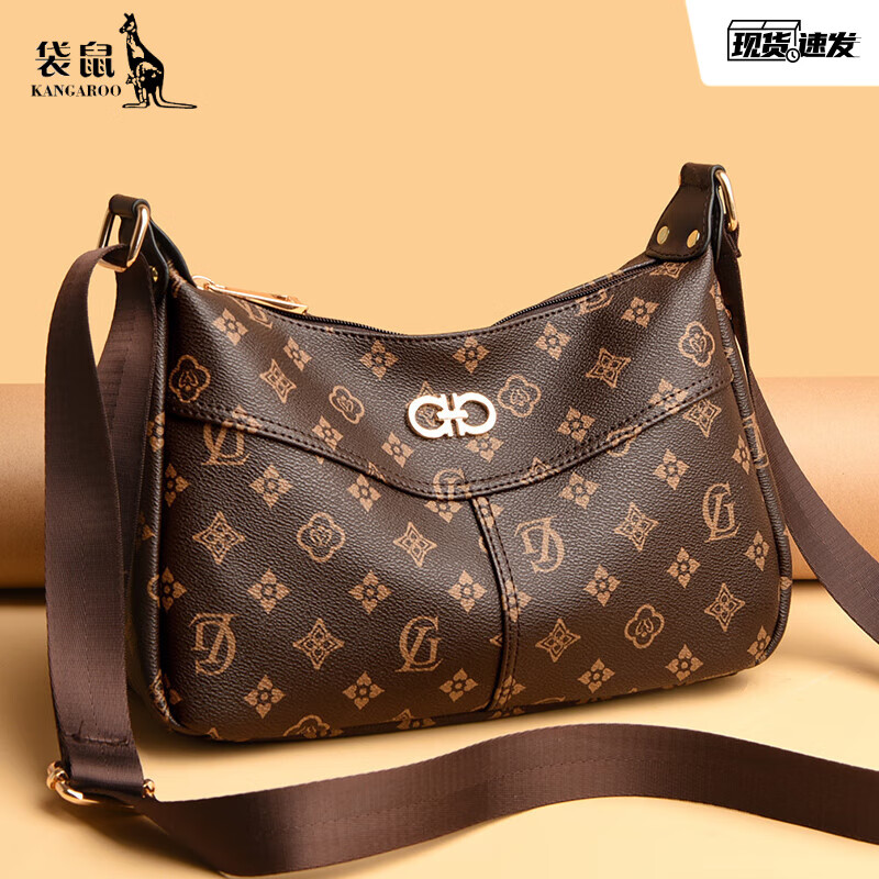 正品袋鼠中老年单肩包女2025新款百搭软皮送妈妈斜挎小包包皮包包