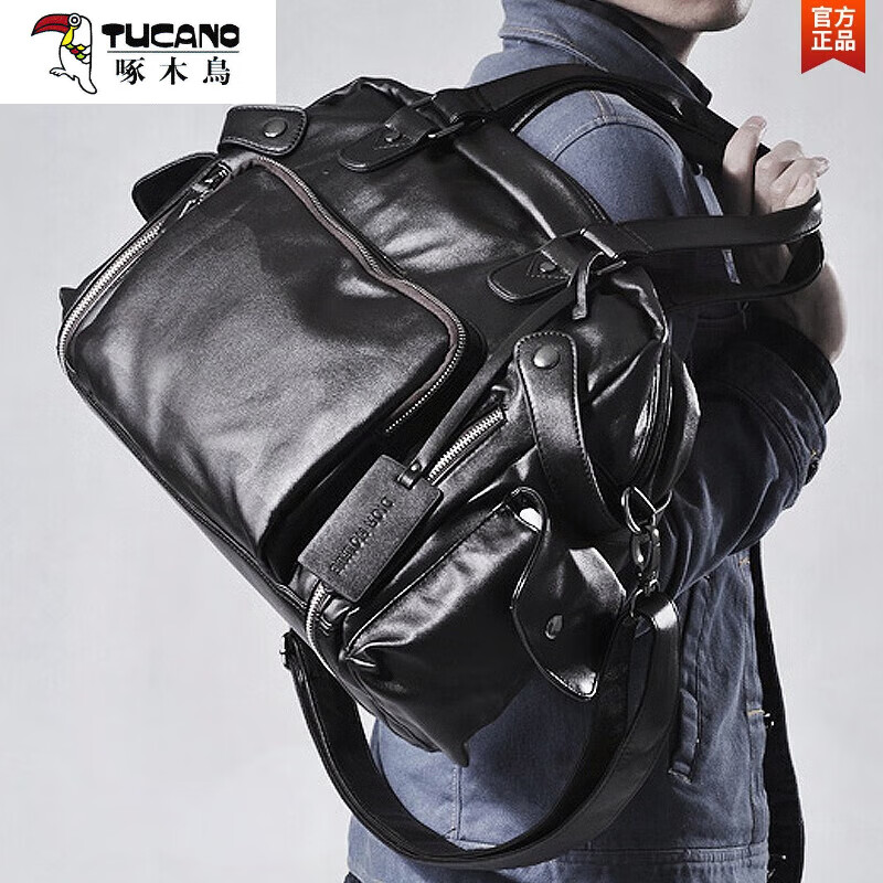 啄木鸟(TUCANO)男包休闲单肩包斜挎包手提包男士皮包背包商务旅行包潮大容量新款 黑色