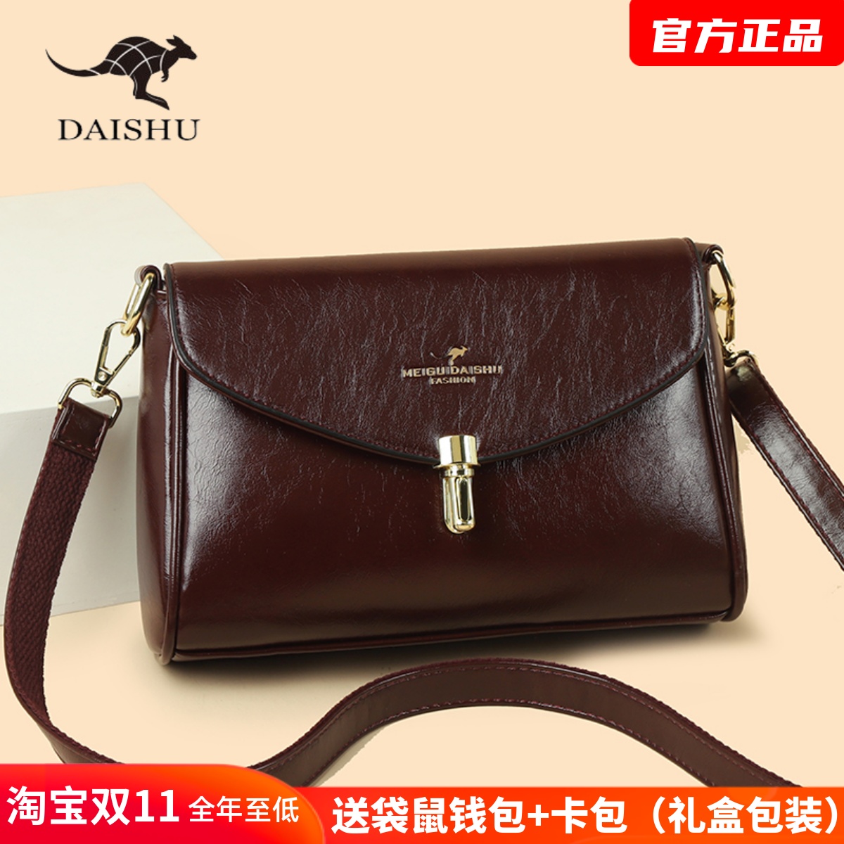 袋鼠真皮包包女2025新款时尚复古中年妈妈单肩斜挎包牛皮女士小包