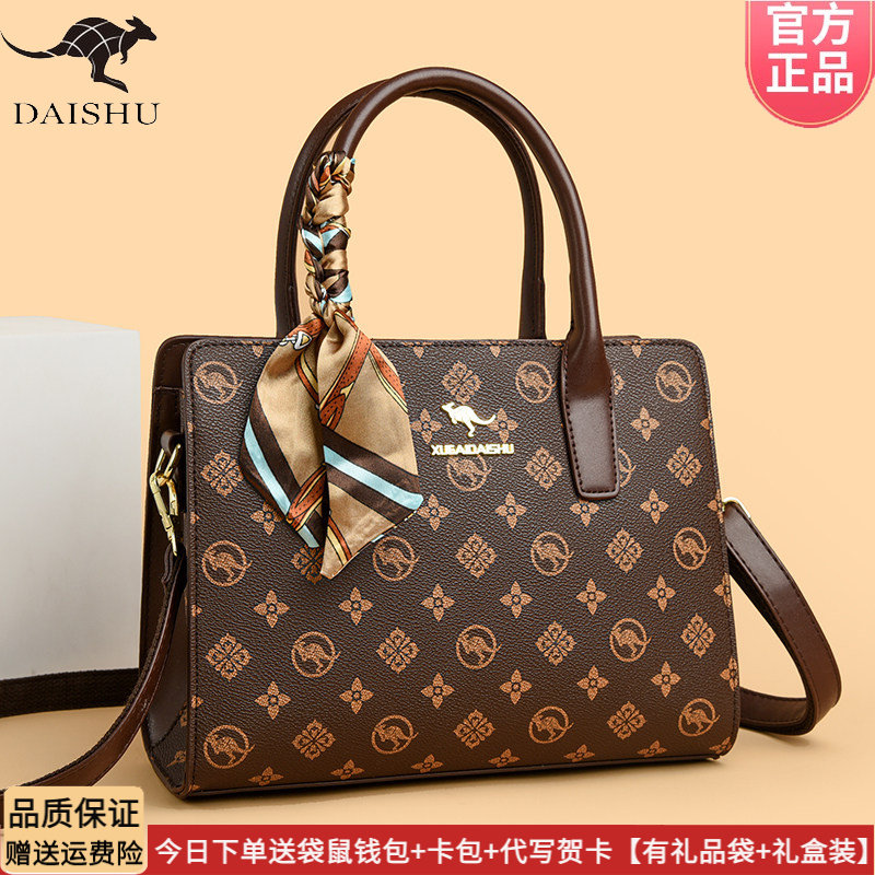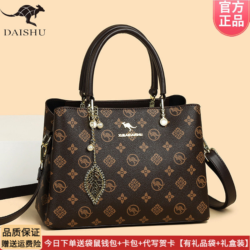 袋鼠品牌手提包皮包软皮单肩包女2026新款时尚百搭妈妈包送礼包包