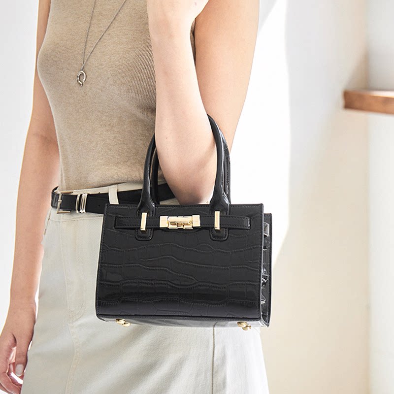 2026春季新款手提包复古风牛皮包鳄鱼纹凯利包时尚百搭单肩斜挎包