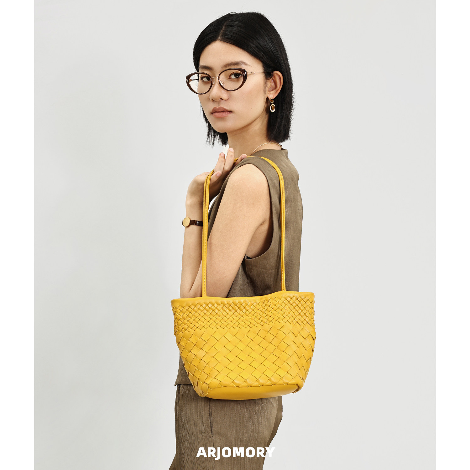 ARJOMORY原创新品大容量牛皮编织托特包2026夏季出行女单肩法式包