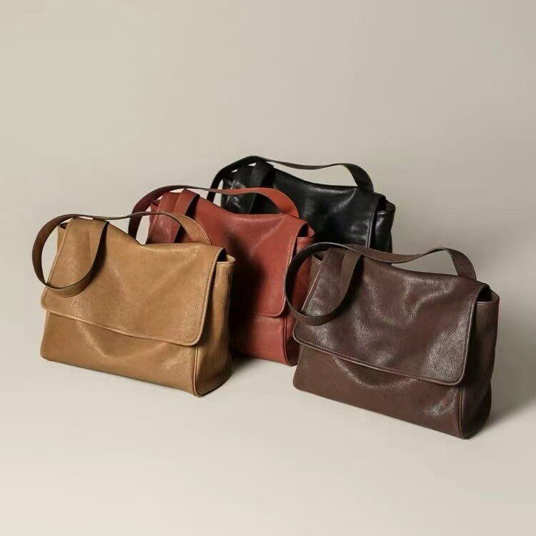 简约翻盖邮差包女复古百搭通勤大容量头层植鞣牛皮包