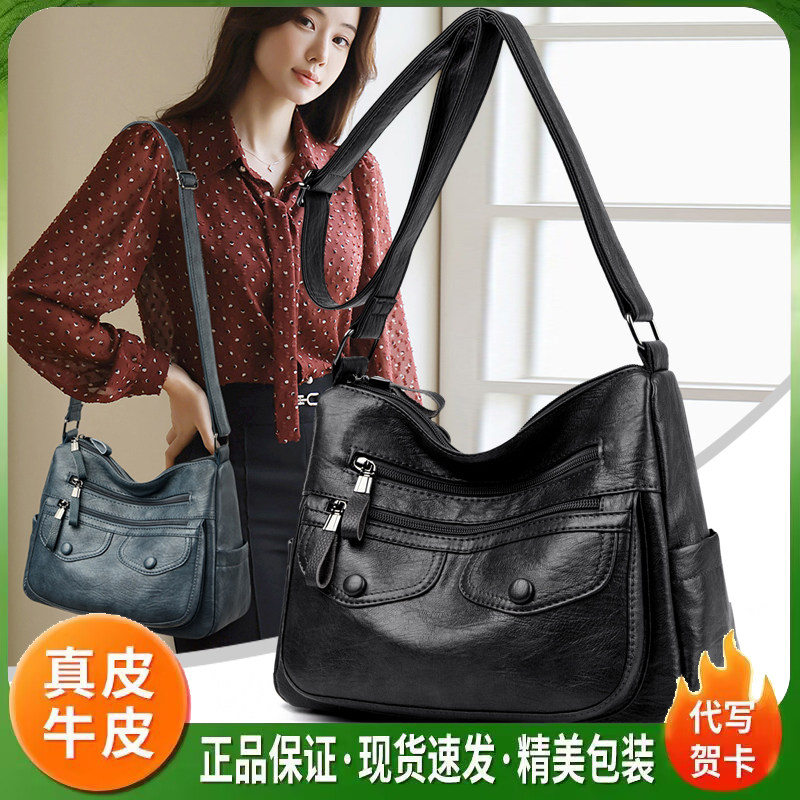 真皮牛皮女包2026新款多层大容量软皮包单肩斜挎包女中老年妈妈包