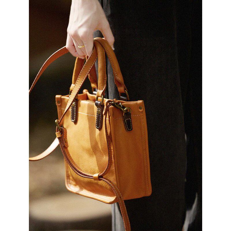 谷家 复古植鞣手工牛皮斜挎包 小众质感手提单肩真皮包 方糖小包