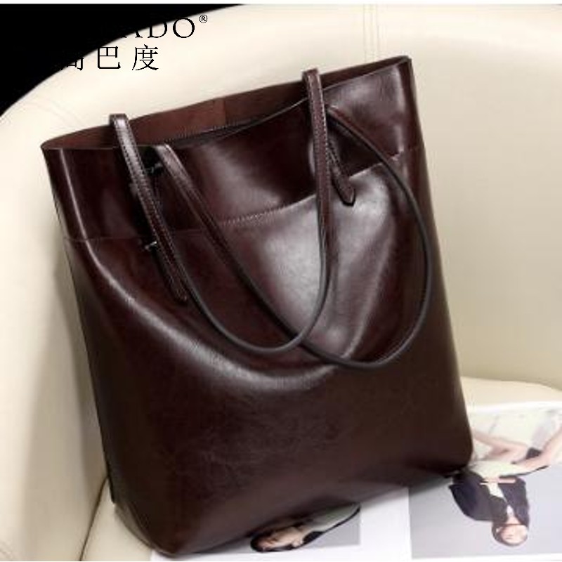 OLOEY国际一线品牌牛皮包包女2025春夏新款时尚大容量手提包真皮百搭撞 咖啡色