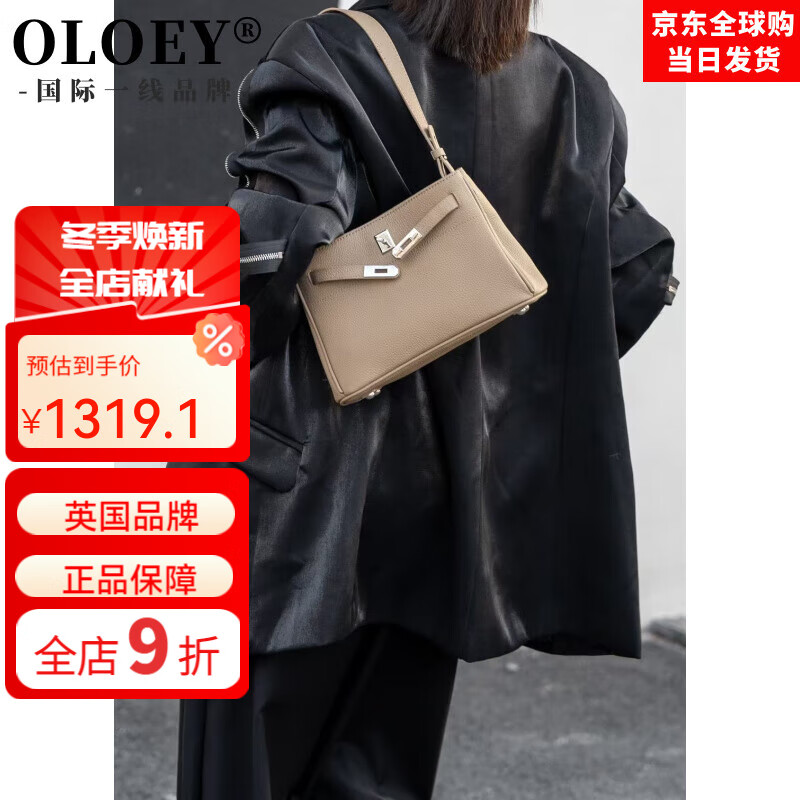OLOEY国际一线品牌轻奢牛皮凯莉包女百搭单肩腋下真皮包感2025冬复古手 灰