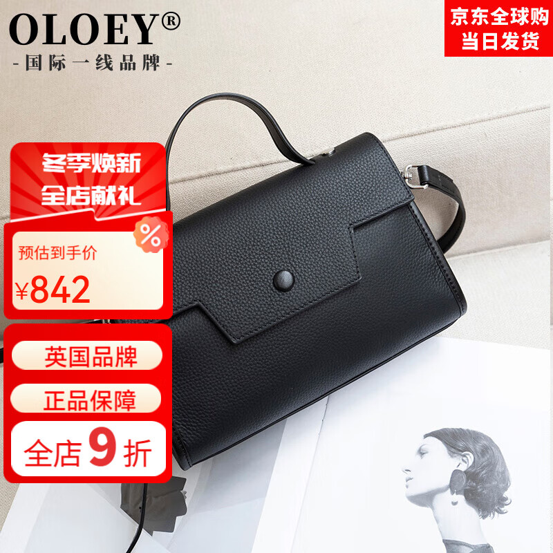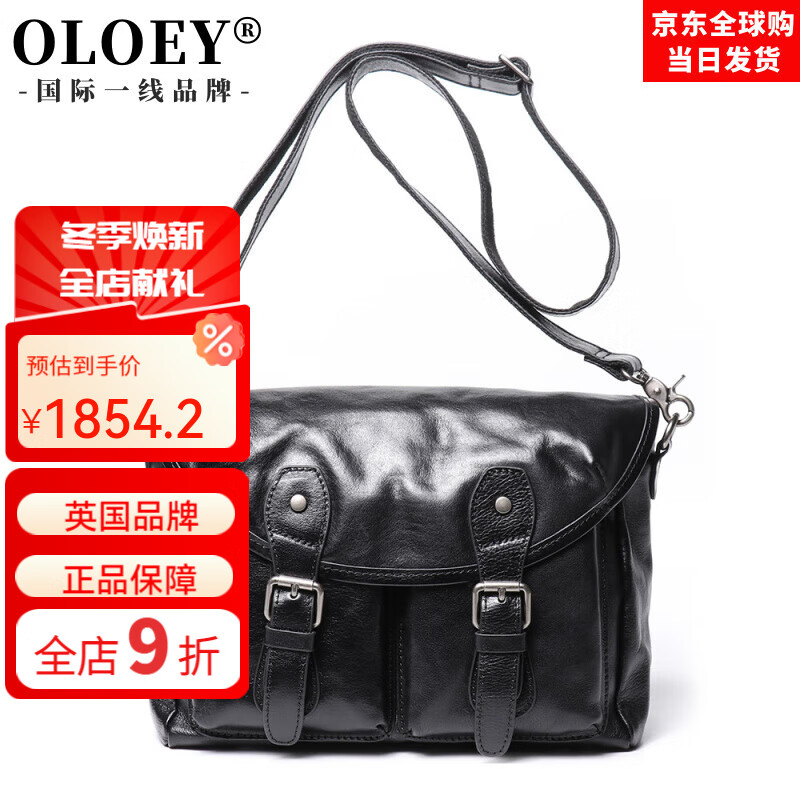 OLOEY国际一线品牌复古真皮男包牛皮男斜挎包植鞣皮包盖式单肩包手工邮 黑色