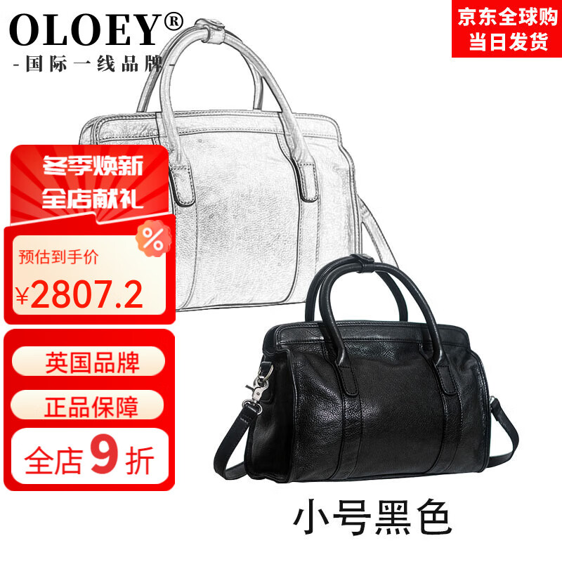 OLOEY国际一线品牌原创真皮手提包文艺复古大容量牛皮包波士顿植鞣皮单 黑色(小号)