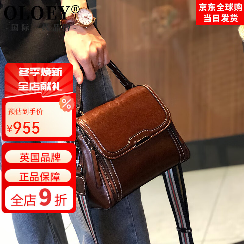 OLOEY国际一线品牌女士手提包牛皮包包女2025新款品牌真皮女包时尚百搭 咖啡色