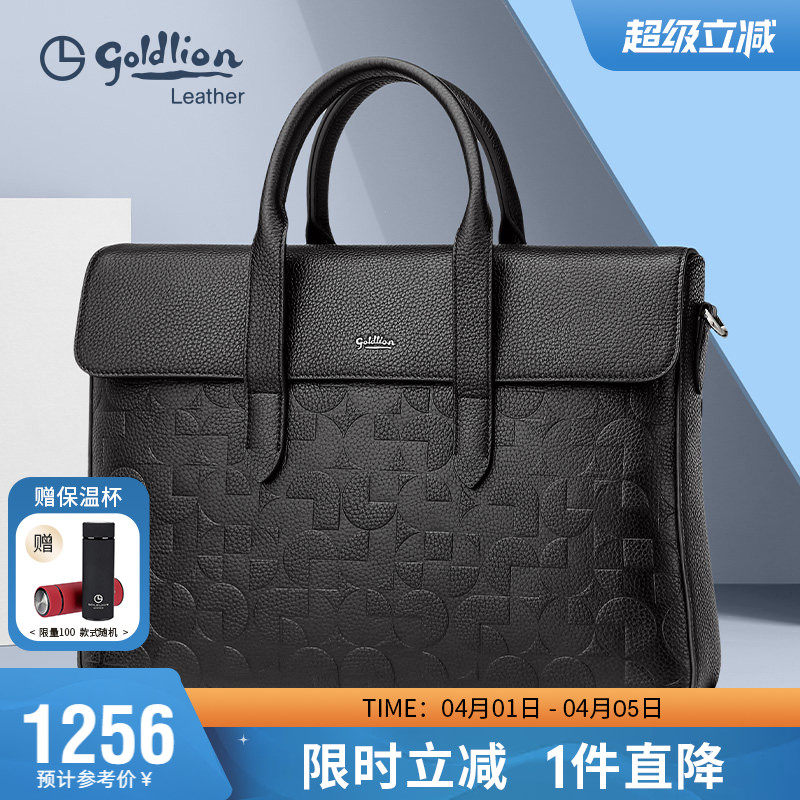 金利来新款手提包男士轻奢真皮包盖式公文包压花头层牛皮商务男包