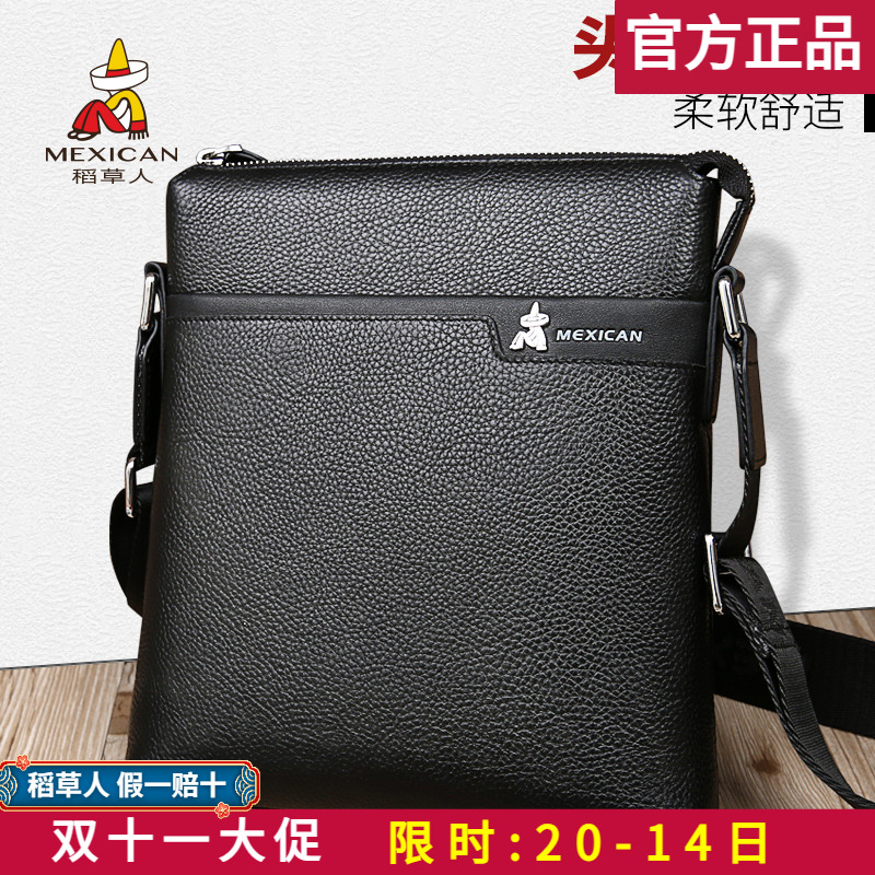 稻草人男包单肩包斜挎真皮背包头层牛皮休闲男士包包商务竖款皮包