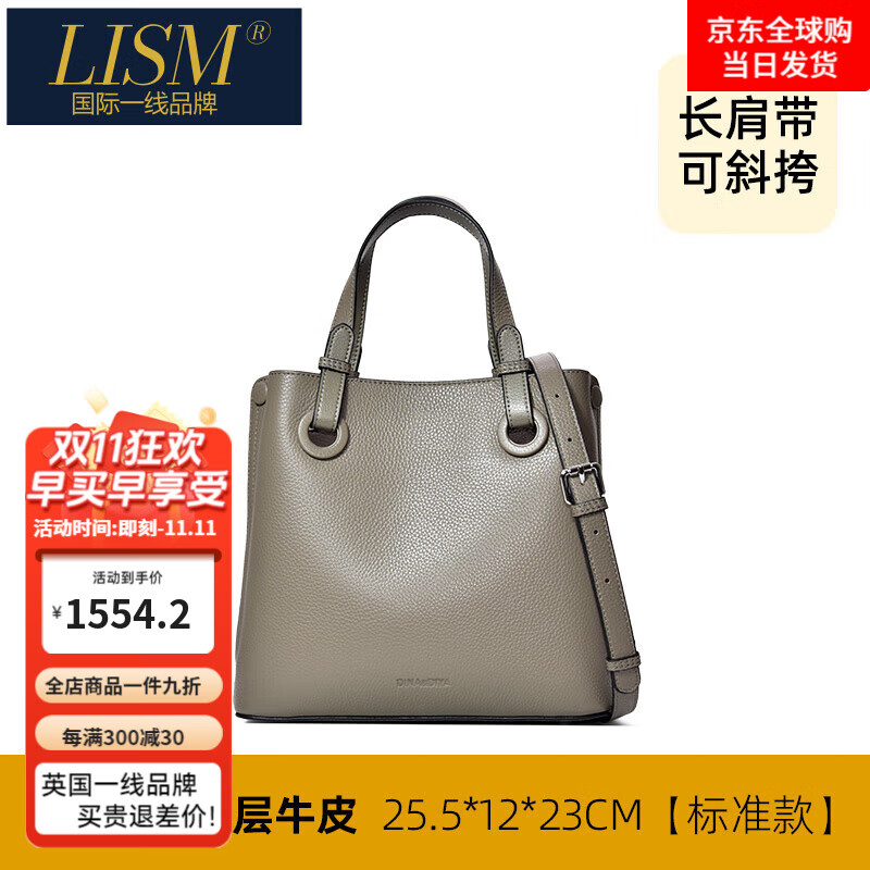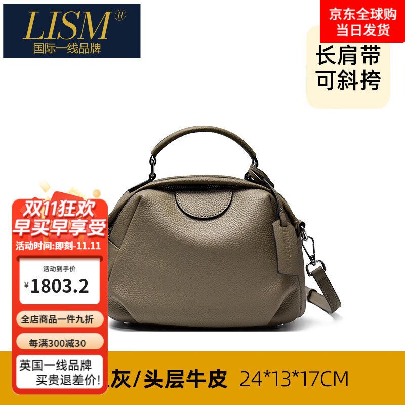 LISM国际一线品牌真皮女包包女式新款头层牛皮包时尚斜挎包女士大容量 大象灰