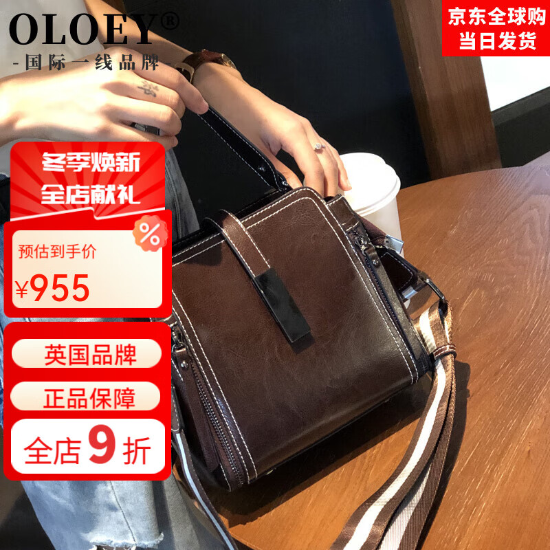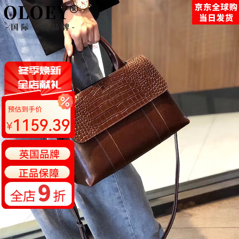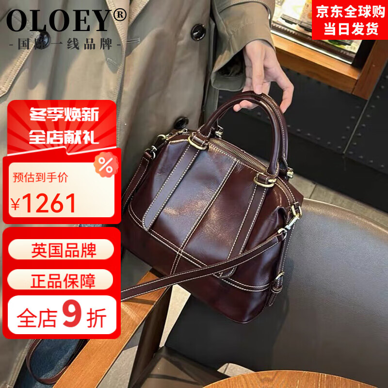 OLOEY国际一线品牌女款大容量手提包牛皮包包感女包斜跨包真皮单肩包大 酒咖色 32*14*23