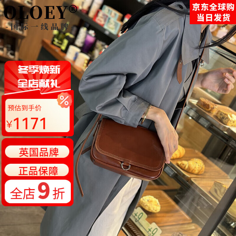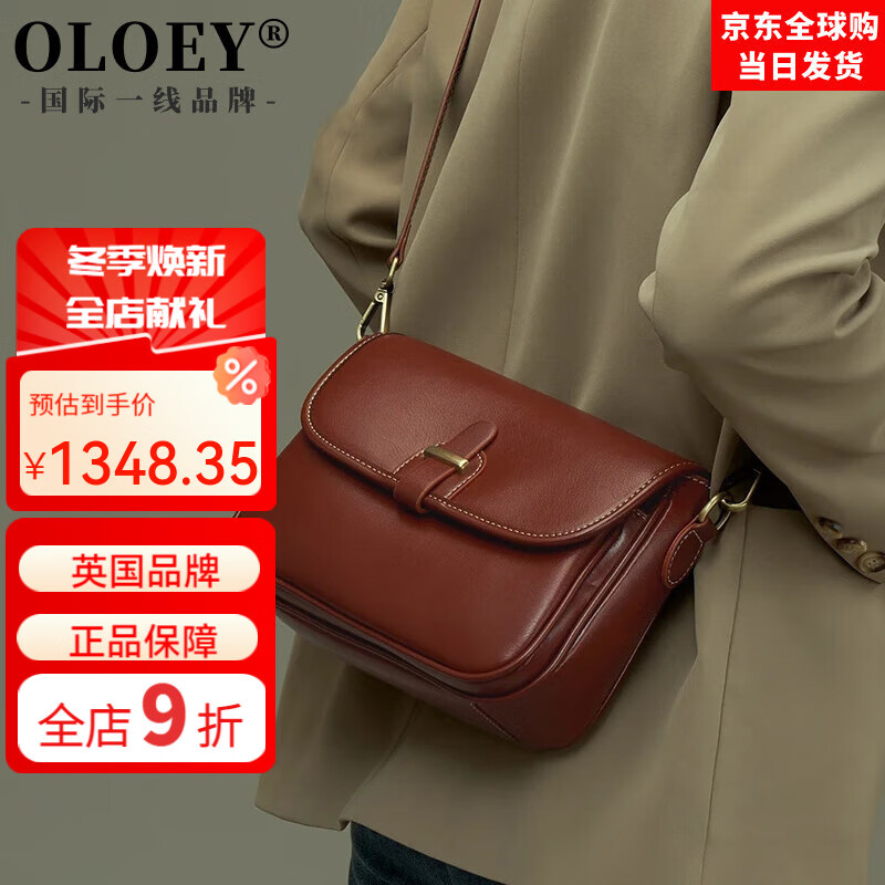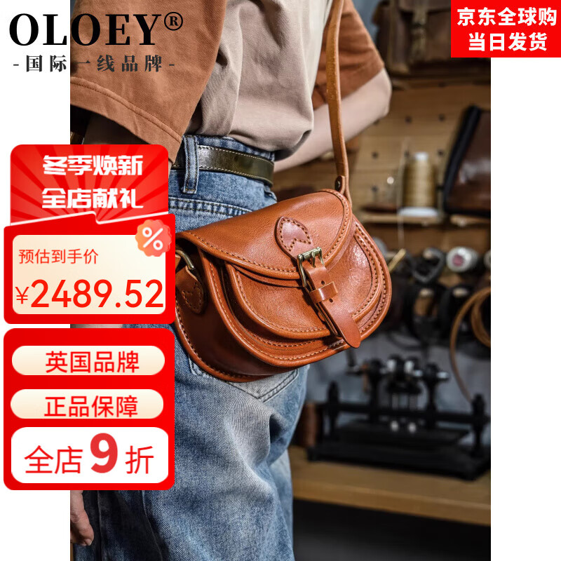 OLOEY国际一线品牌皮薯薯复古手工马鞍包斜挎牛皮包小众文艺复古女士小 棕色
