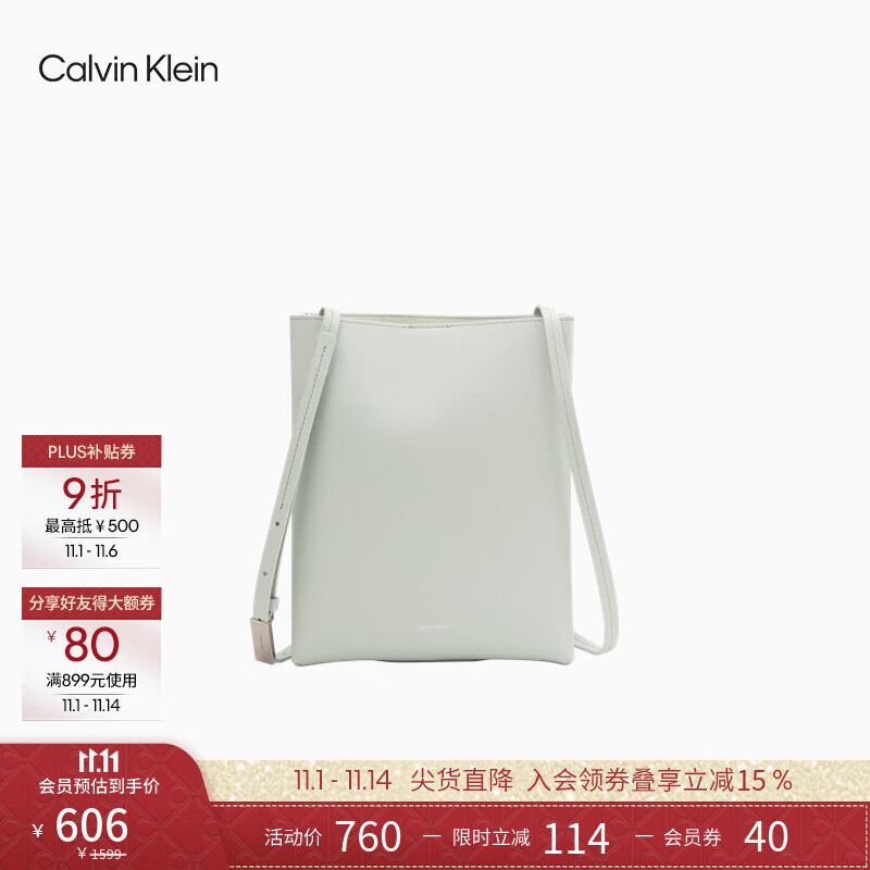 Calvin Klein通勤休闲斜挎包礼物真皮牛皮包包购物纸袋包CK女包方包DH3772 NZH-淡烟灰 OS