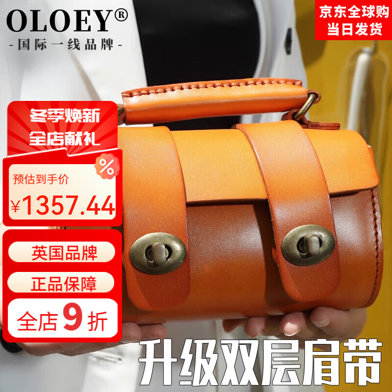 OLOEY国际一线品牌包包2025新款包包小众圆筒包真皮手工包牛皮复古植鞣 黄棕 皮特厚 硬皮包双层皮肩带