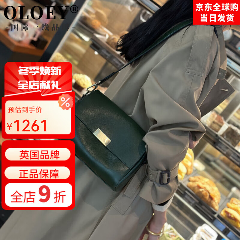 OLOEY国际一线品牌真皮包包女2025新款腋下包女时尚复古斜挎包小众单肩 翡翠绿 24cm*10cm*17cm
