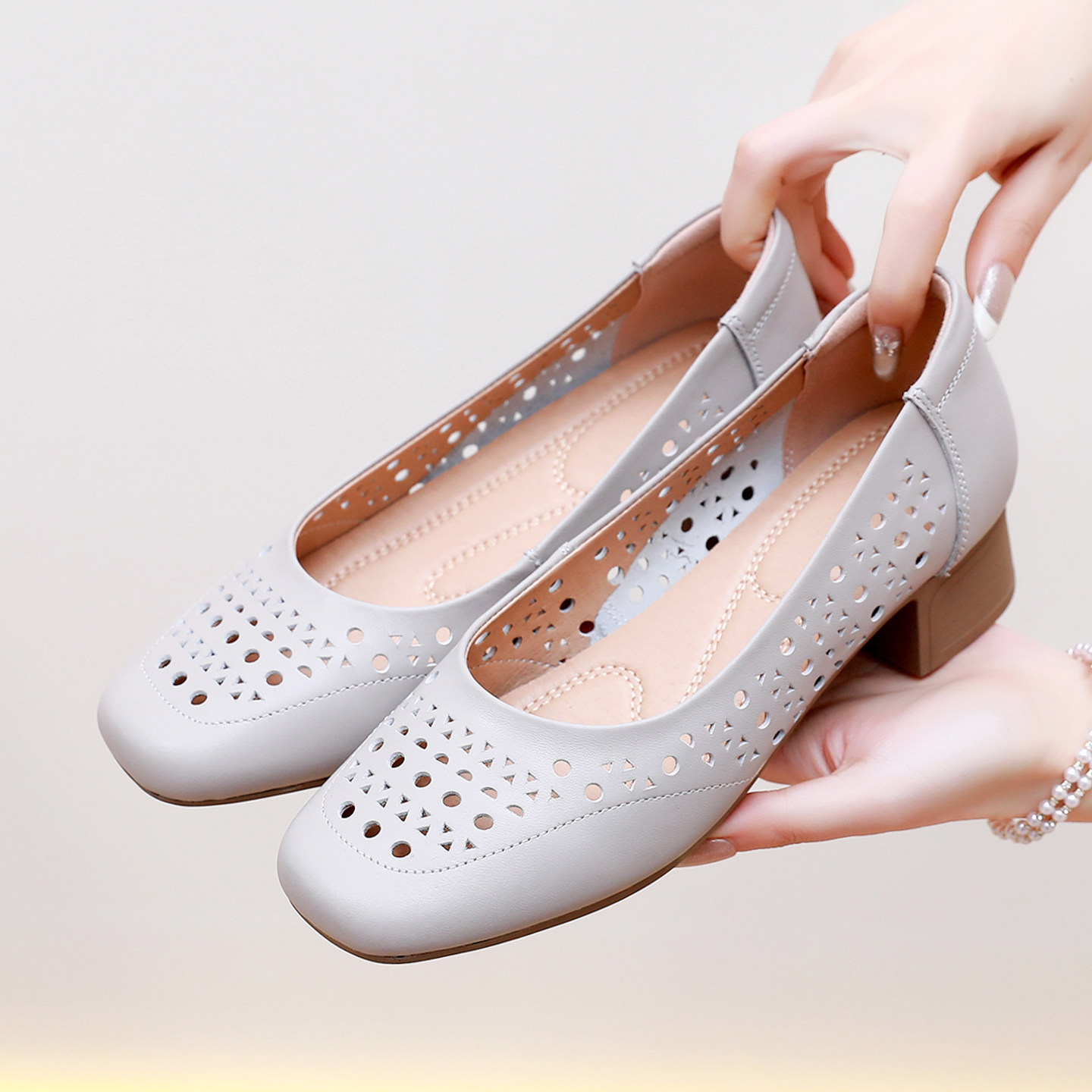 真皮包头凉鞋夏季女鞋子镂空单鞋洞透气软底洞鞋低跟舒适妈妈鞋子