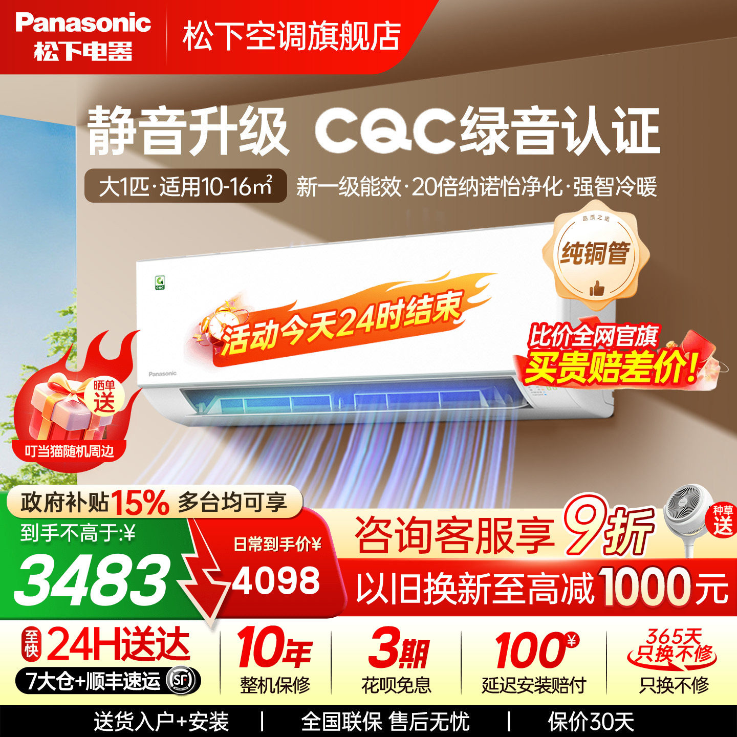 松下空调1匹家用新一级能效变频挂机二代轻净星家用卧室QD26K410Q