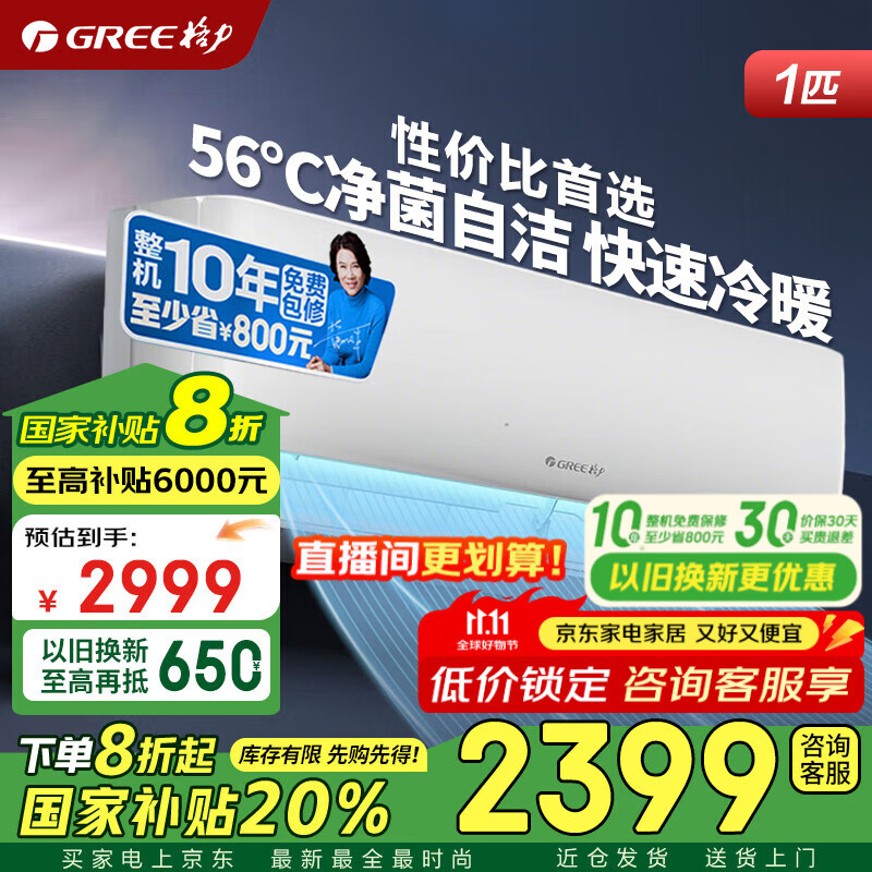 格力(GREE)云佳pro空调挂机家用 大1/1.5匹新一级能效 变频冷暖大风量 节能省电卧室 官方正品家电国家补贴 1.5匹 一级能效 【云佳pro】新品上市