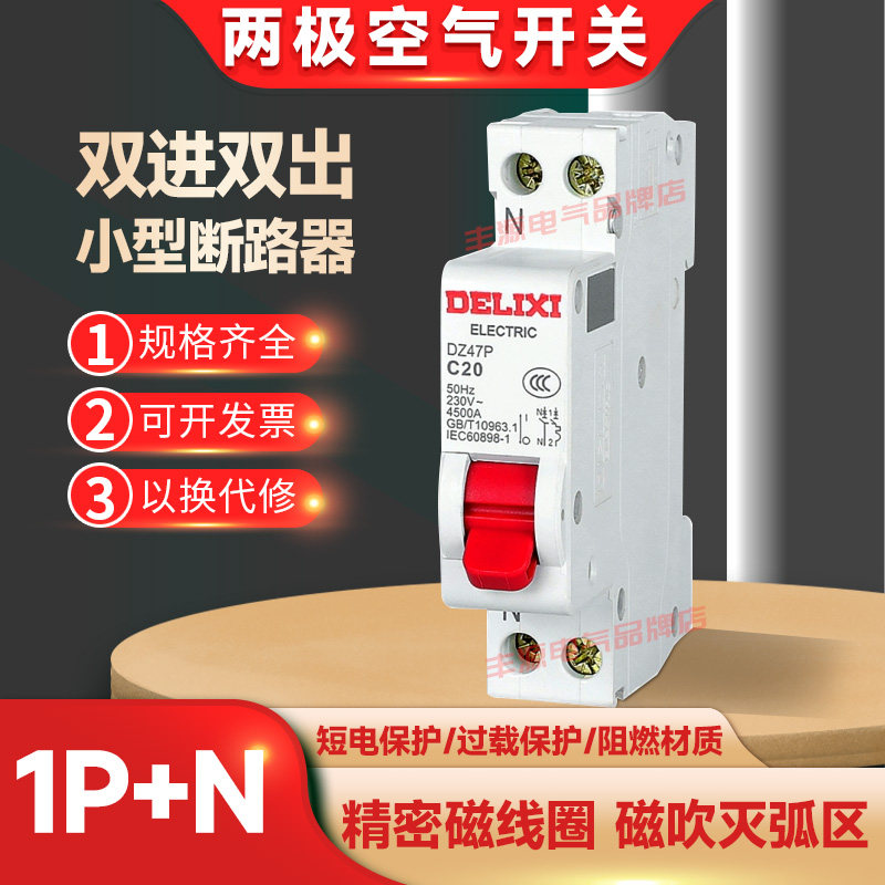 德力西家用dz47P-40小体积断路器1P+N空开16A32A220V空调空气开关