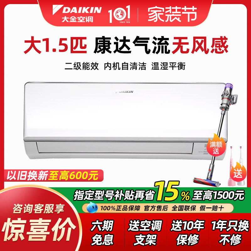 大金空调236康达气流二级能效大1.5匹p挂机变频冷暖家用官方旗舰